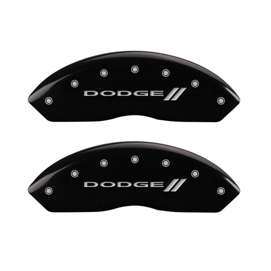 MGP 4 Caliper Covers Engraved Front & Rear With out stripes/Dodge Black finish silver ch