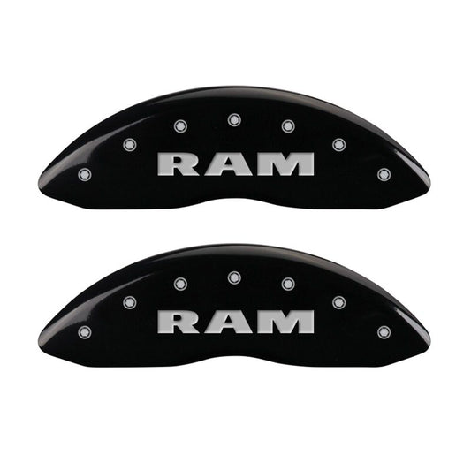 MGP 4 Caliper Covers Engraved Front RAM Engraved Rear RAMHEAD Black finish silver ch