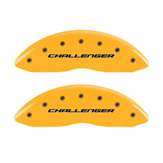 MGP 4 Caliper Covers Engrvd Front Block/Challenger Engrvd Rear Vintage Style/RT Yellow fnsh Blk ch