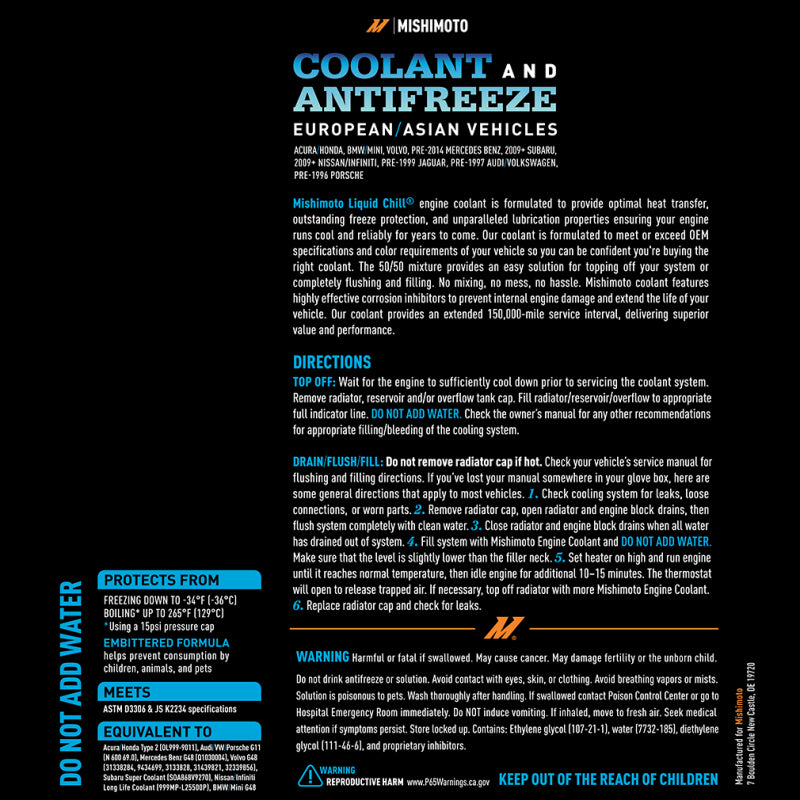 Mishimoto Liquid Chill EG Coolant, European/Asian Vehicles, Blue